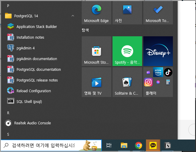 이 중에서 pgAdmin 4 를 클릭한다.