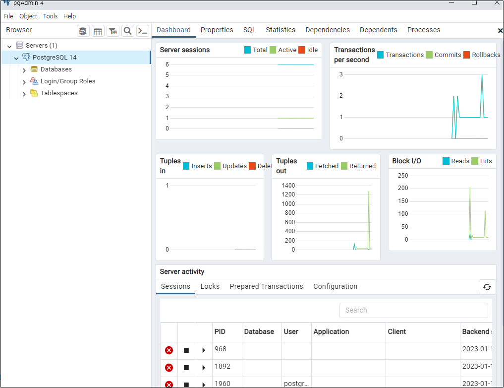 왼쪽에 servers 부터 더블클릭 후 PostgreSQL 을 더블클릭 해주어 비밀번호를 입력하면