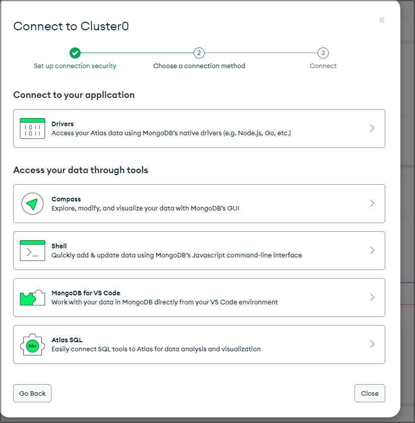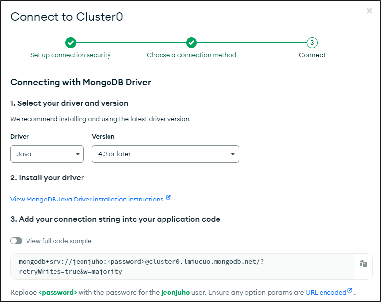 Overview에서 본인의 클러스터의 Connect를 클릭합니다.